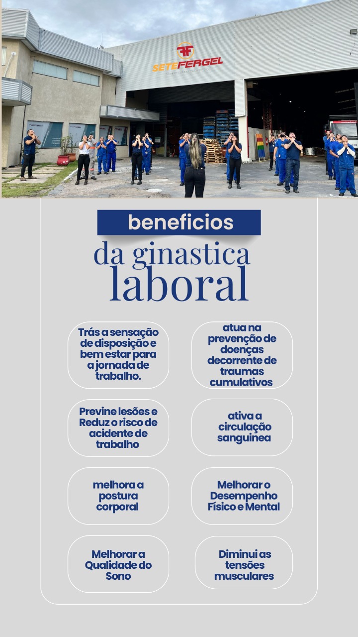 A ginástica laboral é um programa de exercícios físicos praticados no ambiente de trabalho, antes das atividades do dia iniciarem, com o objetivo de melhorar a saúde e o bem-estar dos colaboradores, prevenindo lesões e problemas de saúde relacionados ao sedentarismo e posturas inadequadas.